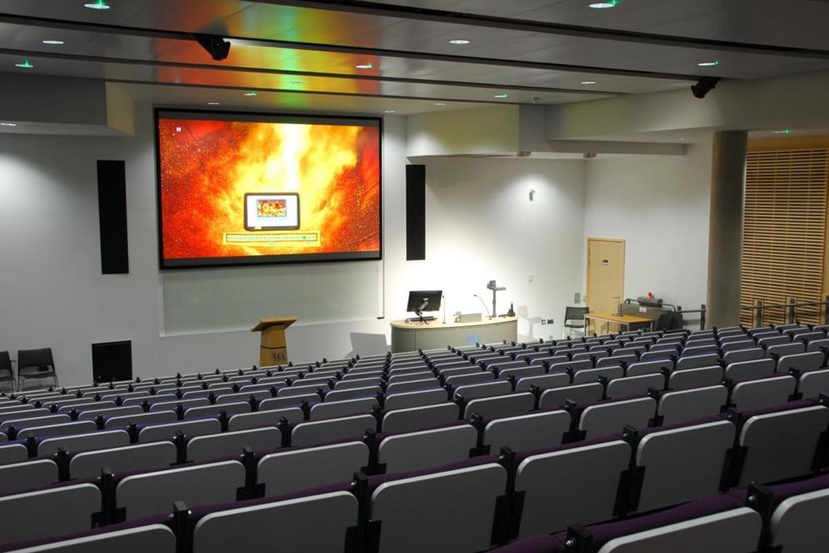 Hội trường không gian nhỏ, khoản cách từ hàng ghế gần nhất nhìn lên màn hình từ 2m -2,5m thì các loại màn hình Led P1.5, màn hình Led P1.6, màn hình Led P1.8 hoặc màn hình Led P2 sẽ là sự lựa chọn phù hợp tùy theo từng kích thước cụ thể.